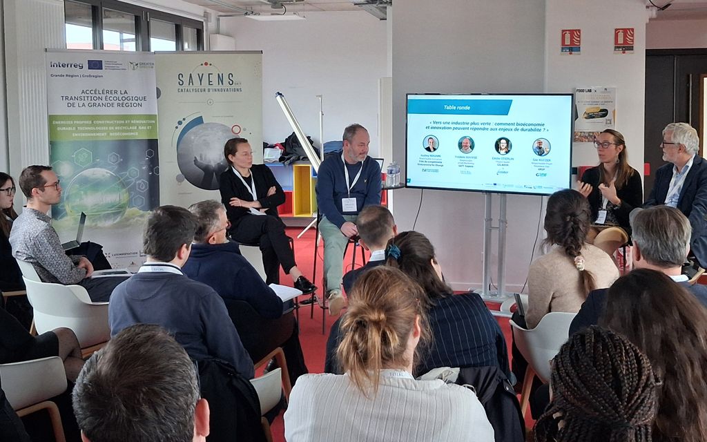 Der Nachmittag begann mit einer Podiumsdiskussion, an der Vertreter des Pôle Bioeconomy For Change, von GRDF, CELABOR und SATT Sayens teilnahmen. Die Teilnehmer tauschten ihre Visionen und Erfahrungen darüber aus, wie die Industrie durch Bioökonomie grüner werden kann, und zwar anhand von: