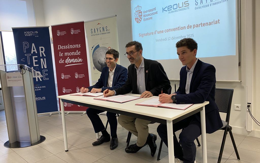 Vendredi 12 décembre, Keolis Dijon Multimodalité, l’Université Bourgogne Europe et la SATT Sayens ont officialisé la signature d’une convention de partenariat stratégique sur le campus de Dijon à l’Institut Marey.